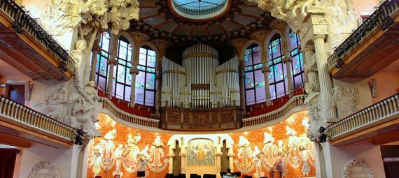El Palau de la Música (primer auditorio de la música catalana) fue construido entre los años 1905 y 1908, por mandato de Lluís Millet y Amadeo Vives, por el arquitecto barcelonés Lluís Domènech i Montaner, en el solar que había ocupado, el antiguo claustro de la desaparecida iglesia de San Francisco de Paula, es decir, estaba en la calle Baja de San Pedro, 13.