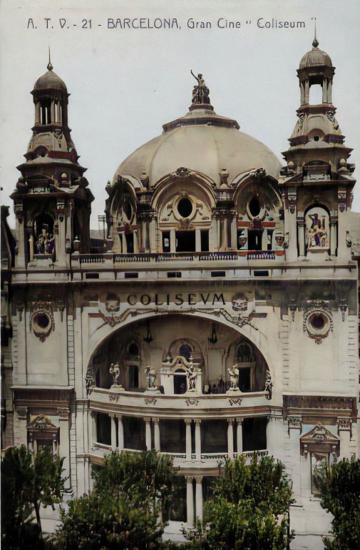 El actual teatro Coliseum fue uno de los primeros cinematógrafos elegantes de Barcelona. Anteriormente en el lugar ya habían sido construidos dos teatros.
