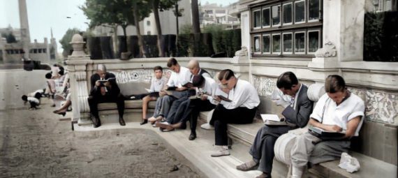 En verano era bastante habitual ver a muchos barceloneses ejercitando el noble arte de la lectura. Al llegar la hora del cierre el mismo empleado recogía los libros, los cerraba en las taquillas donde quedaban depositados todas las noches y hasta el día siguiente.